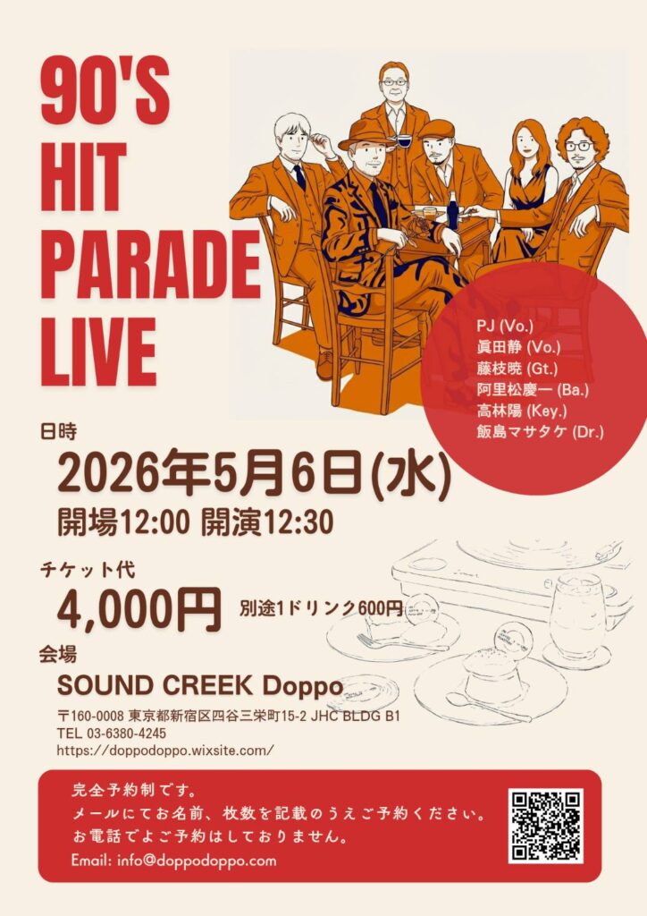 5月6日(水) 90年ヒットパレードライブ@四ツ谷ドッポ 開催!