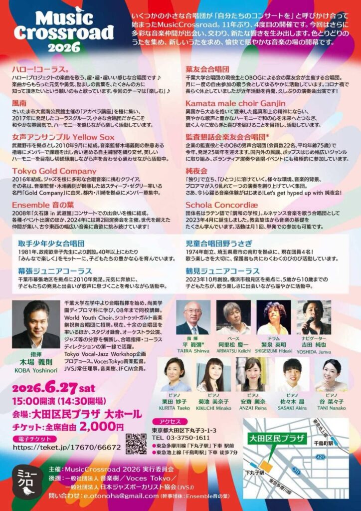 2026年6月27日(土)、大田区民プラザ 大ホールにて**「Music Crossroad 2026」**を開催いたします。